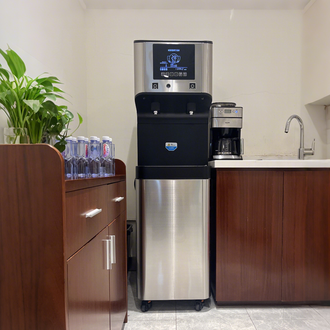 可滿足50-100商務(wù)飲水,UV殺菌顯示,支持語音喚醒,400GRO反滲透去除水中氯、異味、細(xì)菌,冷熱暢飲四季皆宜。