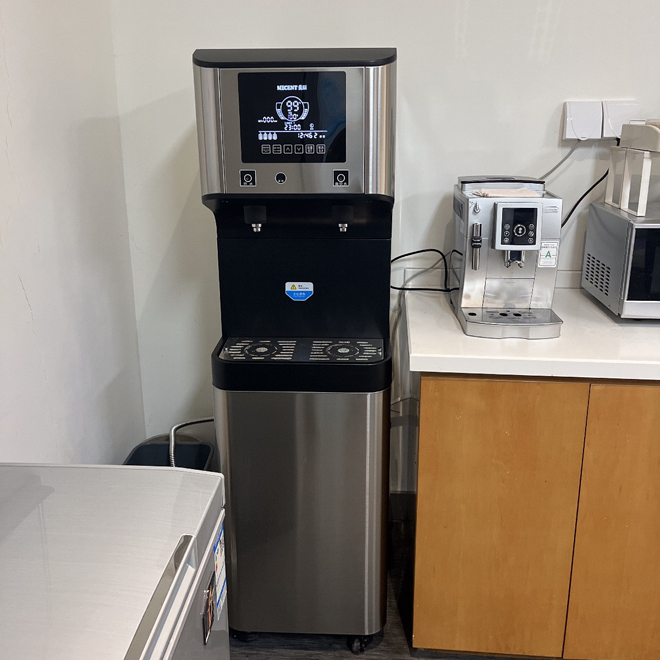 上海奉賢區(qū)某公司為解決健康飲水問題,之前都是使用桶裝水,一直存在桶裝水管理麻煩,空間占用大,喝熱水麻煩等,客戶在網(wǎng)上了解到可以租賃直飲水機(jī),于是聯(lián)系到我們,根據(jù)現(xiàn)有人員給出解決方案,租賃直飲水機(jī)ME205B實現(xiàn)健康飲水升級。該設(shè)備采用RO反滲透技術(shù),過濾精度達(dá)0.0001μm,可去除水中余氯、重金屬、細(xì)菌病毒等污染物,并通過UV紫外線實時抑菌,確保水質(zhì)安全。